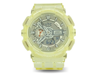 ساعت مچی ضدآب کاسیو جی شاک GA110 عناصر طراحی آنالوگ و دیجیتال را در یک نگاه ترکیب می کند. G-SHOCK عناصر دنده ای شکل عمقی سه بعدی ایجاد می کنند و عقربه های آنالوگ به G-SHOCK جلوه قوی و قدرتمند آن را می دهند.