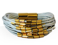 طراحی زیورآلات چرمی را میتوان هنری دانست که در آن کارهای بسیار زیبایی را با ترکیب چرم و فلز میشود ارائه داد. زیورآلات چرمی این روزها جای خودشان را در خریدهای ارزان و گاها مداوم خانمها و آقایان باز کرده اند. استفاده از چرم طبیعی در طراحی زیورآلات به آنها ظاهری کم و بیش اسپرت و حتی رسمی می دهد؛ بنابراین حتی وقتی قرار است اسپرت بپوشید هم می توانید روی آن حساب کنید. خیلی از ما حالا دیگر پا به پای لباسهایی که میپوشیم، به دنبال انتخاب گردنبند، انگشتر و دستبند متناسب با آن هستیم. تنوع در طرح و رنگ و حتی قیمت هم دست ما را باز می گذارد تا انتخابی مناسب با سلیقه و روحیاتمان داشته باشیم. به هر حال کسی برنده است که بتواند با خرید و استفاده از زیورآلات یا وسایل کوچک و ارزان با هر نوع پوشش خود ایجاد تفاوت کند. خرید زیور برای آقایان به نسبت خانمها محدودتر و در عین حال سادهتر است. دستبند چرمی طرح رولکس با دو رنگ قهوهای و مشکی و پلاک نازک طلایی رولکس نمونهای از زیورهای ساده و در عین حال پرطرفدار از جانب آقایان و خانوم ها است که با اکثر رنگهای لباس همخوانی داشته و در عین حال متفاوت دیده میشود. این دستبندها مناسب ترین هدیه برای جوانان شیک پوش است.