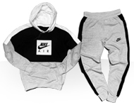 ست سوئیشرت و شلوار نایک طرح Air دارای جنس پارچه ملانژ و رنگ آن خاکستری می باشد که مدل سویشرت آستین بلند و دارای کلاه است.